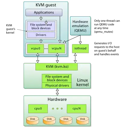 The kernel-mode component of KVM is a part of Linux kernel, itself licensed under GNU General Public License, version 2.[30]