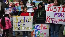 Issues of environmental justice are pertinent to the largely minority population Kettleman City community as studies show that blacks and respondents at lower educational levels, and to a lesser degree, lower income levels were significantly more likely to live within a mile of a polluting facility.[33] Greenaction, a San Francisco-based environmental justice organization, has been working with the local community to document the cases of infant deaths and believes there are issues of environmental injustice due to the city's demographics.[34] Within Kettleman City's population that is 25 years or older, only 30% have completed high school or its equivalent, and 56.4% have less than a 9th grade education.[35] The majority of residents are from Mexico and are Spanish-speaking. In the 2000 Census, the median household income was $22,409 and 43.7% of the population was living below the poverty level. Compared to the US population, Kettleman City residents are younger, and are more likely to rent rather than own their homes.[36]