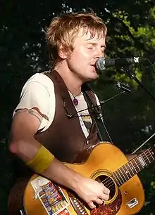 Following his commitments for Goodnight Bull Creek, Mitchell embarked on a recording and touring project with the Basement Birds—a side project with Temperley, Pyke and Steve Parkin.[114] The four musicians recorded and released a self-funded album and completed a national tour in support of the album. The process that was undertaken by the group of friends was unique for the Australian music industry, as explained on the Australian independent music website Soulshine: "In an Australian first, their music will be unveiled in four 3 track bundles fortnightly on iTunes from late June 2010. As well as this, there will be acoustic versions of each track released every alternate fortnight and exclusive content available for fans via the new website ...".[115] The album features the backing vocals of Julia Stone,[116] from Angus & Julia Stone, on a song, "Bus Stop", which was written by Pyke and Mitchell.[117]
