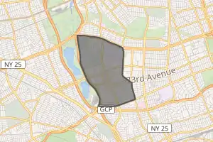 Kew Gardens Hills is located in Queens Community District 8 and its ZIP Code is 11367.[1] It is patrolled by the New York City Police Department's 107th Precinct.[4] Politically, Kew Gardens Hills is represented by the New York City Council's 24th District.[5]