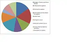 As of 2011, the occupational status of many of Kexby's population has changed. The census report of 2011 highlights this shift. The most popular form of employment for Kexby now is in the professional trade, with 31 people working in this sector, 17% of the villages population. 28 people also work as Managers, Directors and Senior Officials, with 29 involved in the Skilled Trade sector.[11] These statistics go to show how much the workplace has changed over the past 130 years since the 1881 census. Now, only 15 residents of Kexby work in Elementary Occupations, such as farming.[12]