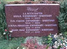 Khalil Esfandiary-Bakhtiary (Persian: خلیل اسفندیاری; April 3, 1901 in Izeh – January 19, 1983 in Munich), was an Iranian politician and diplomat.[1] Bakhtiary was Iran's Ambassador to West Germany from 1952 to 1961.[2][3] He was the father of Soraya Esfandiary-Bakhtiary, the second wife of Mohammad Reza Pahlavi, the last Shah of Iran.