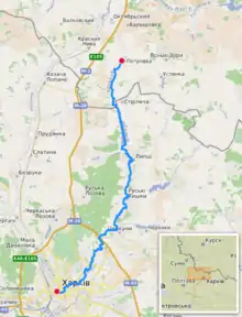 The Kharkiv or Kharkov (Ukrainian: Ха́рків, Russian: Харьков) is a river in Kharkiv Oblast, Ukraine, a left tributary of the Lopan.[1] It originates from the town of Oktyabrsky in Belgorod Oblast, Russia and it falls into Lopan in the city of Kharkiv.