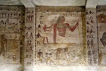 His tomb chapel is cut into the rock and consists of one room with six columns, also cut into the rocks.[3] The tomb decoration is painted and shows Khety hunting in the marshes, workmen and farmers, wrestlers, but also a siege of a fortress.[4]