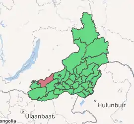 Khiloksky District (Russian: Хилокский райо́н) is an administrative[1] and municipal[6] district (raion), one of the thirty-one in Zabaykalsky Krai, Russia. It is located in the southwest of the krai, and borders with Ulyotovsky District in the east, Krasnochikoysky District in the south, and with Petrovsk-Zabaykalsky District in the west. The area of the district is 14,800 square kilometers (5,700 sq mi).[2] Its administrative center is the town of Khilok.[1] Population: 31,760 (2010 Census);[3] 33,434 (2002 Census);[9] 40,758 (1989 Census).[10] The population of Khilok accounts for 36.3% of the district's total population.[3]
