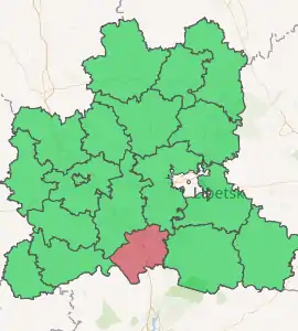 Khlevensky District (Russian: Хле́венский райо́н) is an administrative[1] and municipal[4] district (raion), one of the eighteen in Lipetsk Oblast, Russia. It is located in the south of the oblast. The area of the district is 910 square kilometers (350 sq mi). Its administrative center is the rural locality (a selo) of Khlevnoye.[1] Population: 20,208 (2010 Census);[2] 22,251 (2002 Census);[6] 24,106 (1989 Census).[7] The population of Khlevnoye accounts for 29.5% of the district's total population.[2]