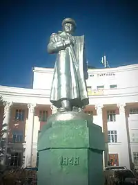 Choibalsan's image in modern Mongolia remains mixed. At the time of his death, he was widely mourned as a hero, a patriot, and ultimately a martyr for the cause of Mongolian independence. Remnants of his strong personality cult, as well as successful efforts by his successor Tsendenbal to obstruct "de-Stalinization" efforts that could have shed light on Choibalsan's actions during the purges, helped solidify the positive regard many Mongolians held of their former leader. Official criticisms of Choibalsan in 1956 and 1969, which blamed him for "crude violations of the revolutionary law [that] led to many people perishing,"[58] and even the MPRP Central Committee's 1962 decision, in lock-step with Khrushchev's anti-Stalinization policies, to take "decisive measures to ensure complete liquidation of the harmful consequences of Kh. Choibalsan's cult of personality in all spheres of life,"[59] failed to generate serious public discourse on the matter.[60]