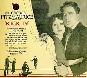 Kick In is a 1922 American silent crime drama film produced by Famous Players-Lasky, distributed by Paramount Pictures, and starring Betty Compson and Bert Lytell. The picture was directed by George Fitzmaurice, who previously directed a 1917 film version of the story. Both films are based on Willard Mack's 1913 play that was produced on Broadway in 1914 starring John Barrymore.[1] The supporting cast features Charles Ogle, who had played the first screen Frankenstein's monster in the original 1910 version of Frankenstein.