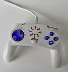 The Rokenbok vehicles, crane, and elevator were controlled with controllers, not unlike the Xbox's or PlayStation's in design. The first generation controller was wired and required that the user pressed a button to cycle to the vehicle number they wished to control. The successor to this was the "Rok-Star" controller, a wireless controller that allows players to select a vehicle by pointing a red light onto the vehicle's receiver. This removed the limit on how many vehicles could be controlled by a player, and how many players could play at once. The control pads, consist of three sections, the left contains the four-way directional pad, or D-pad, that controls the movement of the vehicles. On the center of each control pad is a button which the player presses to cycle through available units and vehicles that can be controlled (up to eight on the older RC controllers, chosen by setting a LED light on a number 1-8, presented in a circular fashion, each corresponding to the numbered radio keys in each vehicle on the Classic RC base, or on the ROK star controller, there is a large "R" button the player presses and holds and then points at a ROK star vehicle to select it). On the right section, there are four function buttons: A, B, X, and Y. They have different functions for each vehicle. The ROK star controller also has buttons to sound a siren (and change its pitch) and sound back-up alarms. Above each handle, at the top of the control pad, are two shoulder buttons. The left-hand shoulder button will switch to the last vehicle the player used; the right-hand shoulder button will slow the vehicle down. The D-pad and shoulder buttons provide the same function for each vehicle.