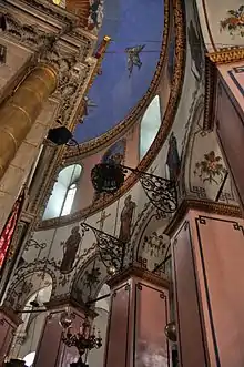 As in most Ethiopian churches, the interior consists of three concentric rings. In the centre is the square meqdes (መቅደስ), "sanctuary", also called the qiddiste qiddusan (ቅድስተ ቅዱሳን), "holy of holies", which only priests and deacons may enter and which contains the tabot, the tablet over which the Eucharist is celebrated. Around this is the circular part known as qiddist (ቅድስት), "holy", intended for those able to receive holy communion. The outer circular ring, the qne mahlet (ቅኔ ማሕሌት) is for the cantors and is accessible by the faithful generally.[11][12][13][14]