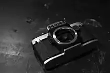 The other family of Kiev medium format cameras are based on Pentacon Six and probably inspired by Zenit 70.[3] Those cameras look like enlarged 35mm SLRs. They use the same breech-lock lens mount as Pentacon Six, allowing them to use all the lenses made for that system, including, but not limited to, lenses made by Meyer Optik Görlitz, Carl Zeiss Jena, Schneider Kreuznach (for the Exakta 66), Kilfitt and others in addition to lenses made by Arsenal Factory. These cameras have a simpler frame-advancement mechanism than the Pentacon Six but it is often poorly adjusted at the factory resulting in incorrect frame spacing.[8] This problem can be fixed.[9]