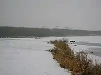 Castle Semple and Barr Lochs are SSSIs and Kilbirnie Loch is a Scottish Wildlife Trust designated LSNC (Local Site for Nature Conservation) in terms of the Ayrshire Local Biodiversity Action Plan (ALBAP) and in partnership with North Ayrshire Council.[19] High levels of invasive alien waterweed species, Canadian waterweed (Elodea canadensis) and Nuttall’s waterweed (Elodea nuttalli) if left unchecked, will continue to spread and overwhelm other native aquatic plants.[4] The loch's southern end is dominated by large areas of mown grass with mature grown bushes and wood copses. The western shore for the first 0.75 km or so is composed of planted willow with some older deciduous trees; round the loch into the very north-east corner, pastures surround the loch. Along the western part, the ground slopes quite steeply down to the loch. The northern shore itself is level and there are areas of marshy ground. The eastern side of the loch is a narrow strip of reedbed and bogbean grows in sheltered area.[27]