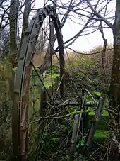 This was a collier's hamlet near the Maich Water. The Loch Riggs Colliery was abandoned in 1808 when the works were flooded. The rich coal seams ran under the loch and were never further exploited. In 1900 the old colliery waste was encountered by the navvies during the construction of the railway between Lochwinnoch and Kilbirnie. A nearby road was locally known as the 'Back-Stair-Heid' and it has been suggested that this refers to the location of a pit ladderway used to carry coal out of the mines before winding engines were in use.[18]