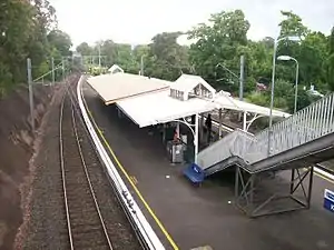 Killara railway station is located on the North Shore line, serving the Sydney suburb of Killara. It is served by Sydney Trains T1 North Shore line services. Killara Railway Station has heritage significance at a local level and is set among expansive gardens, rare in the Sydney Metropolitan train network.[2]