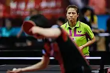 Kim Kyungah (Korean pronunciation: [kim.ɡjʌŋ.a]; born May 25, 1977 in Daejeon, South Korea) is a South Korean table tennis player.[1] She was the bronze medalist in women's singles at 2004 Athens Olympics.[3] She was 6th in the ITTF world ranking as of March 2013.[4]