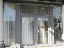 The main facade of the building features five arches supported by Corinthian columns and extensive plate glass windows displaying the showroom's interior, and the entrance includes cast iron piers and a transom with an iron grille. The McDaneld Motor Company, the Bush-Morgan Motor Company, and the Howard Motor Company all used the building as a dealership, and it was later used as a body shop.[2]