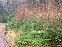 A number of fine trees and avenues survive from in the old estate policies, including several fine Wellintonias, oaks, limes lining the main drives, yews and specimen sycamores beside the River Ardle. Red squirrels are still common (2009) and the river has many hazels, birches and alders on its banks.