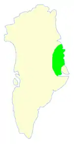 It includes the Stauning Alps, Scoresby Land, as well as the vast glacier and fjord expanses of northeastern Greenland between the ice sheet area west of the Kaiser Franz Joseph Fjord and the eastern end of Wollaston Foreland in the shore of the Greenland Sea.[1]
