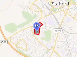 King Edward VI High School is administered by the Staffordshire County Council Education Committee.[1] It serves mainly the west of Stafford to the Shropshire border, and admits students aged between 11 – 19 years.