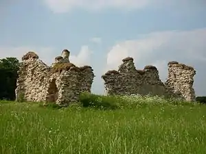 There are only three recorded visits to the King's Houses by Henry III.[3] Philip Rahtz attributes the standing ruin to this phase of building,[8] however J. Wright considers that the presence of Romanesque features associated with the extant structure which have been identified subsequent to Rahtz's fieldwork may push back the dating to Henry II's construction of 1176-80.[9]