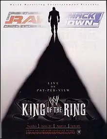 King of the Ring was a pay-per-view (PPV) event held annually in June by World Wrestling Entertainment (WWE) since 1993.[2] The PPV featured the King of the Ring tournament, a single-elimination tournament that was established in 1985 and held annually until 1991, with the exception of 1990; these early tournaments were held as special non-televised house shows and were held when the promotion was still called the World Wrestling Federation (WWF). The winner of the tournament was crowned "King of the Ring."[3] Unlike the non-televised events, the PPV did not feature all of the tournament's matches. Instead, several of the qualifying matches preceded the event with the final few matches then taking place at the pay-per-view. There were also other matches that took place at the event as it was a traditional three-hour pay-per-view. Considered as one of WWE's "Big Five" PPVs, along with the Royal Rumble, WrestleMania, SummerSlam, and Survivor Series, the company's five biggest shows of the year,[4] the 2002 event was the 10th King of the Ring PPV and 16th tournament overall. It was held on June 23, 2002, at the Nationwide Arena in Columbus, Ohio. The 2002 tournament has thus far been the only tournament to award the winner a prize other than the title of "King of the Ring;" the winner also earned a match for the WWE Undisputed Championship at that year's SummerSlam.[5]