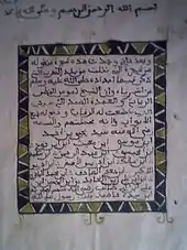 Ahmed Amokrane then turned his attention to the territory of the Ouled Naïl, which he took from Bou Saâda to Djelfa. The date of these expeditions is generally held to be around 1573.[26] This period marks the high point of the kingdom in terms of its governance and the administration of its territories. Ahmed Amokrane was bold enough to send his own son to Algiers in 1580 to welcome the newly arrived Jaafar Pasha.[27] By 1590, his influence was such that whole tribes paid tribute to him rather than to Algiers. Khizr Pacha went back to war with him and laid siege to the Kalâa for two months, but was unable to take it. Instead, he pillaged the surrounding countryside, razing its villages. Hostilities were eventually ended following mediation by a marabout, which involved Ahmed Amokrane paying a tribute of 30,000 douros to secure Khizr Pasha's withdrawal and recognition of his independence.[28]