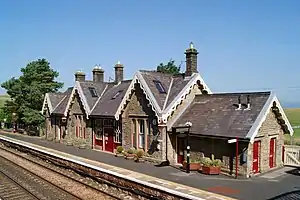 The station is leased by the Settle and Carlisle Railway Trust, which comprehensively restored it in 2009.[4] The main buildings on platform 1 now incorporate a caretaker's flat, offices, holiday accommodation and the Midland Room, opened in July 2011,[5] which includes a cafe and exhibition of items related to the Settle and Carlisle railway. Platform 2 (northbound) has a stone shelter. The old goods shed to the south is now in private commercial use, goods facilities having been withdrawn here in 1964.