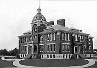 While public education existed in Kirksville from at least the American Civil War era, there was no separate high school building until 1894. The first purpose-built high school building was not built until 1899.[2] However rapid community growth soon necessitated the construction of a bigger KHS in 1914. This building, near downtown Kirksville, served the community well for over forty years. Post-World War II growth and influx of new citizens as well as the post-war baby boom, pointed out the need to plan for the future. As a result, in 1960 the current Kirksville High School was constructed.[3] Its campus-style design was more conducive to expansions and remodeling, both of which have occurred through the decades, ensuring high school education without the high expense of yet another new building. The old Kirksville high school building, constructed in 1914 and located in the 400 block of East McPherson street, fell into disrepair after its discontinued use in the 1980s. Despite efforts to save it, the building was condemned in 2007 and razed in April 2019.