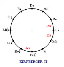Kirnberger temperament is an irregular temperament developed in the second half of the 18th century by Johann Kirnberger. Kirnberger was a student of Johann Sebastian Bach, held great admiration for his teacher and was one of his principal proponents.[1]