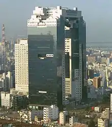 Dentsu and Yomiuri Shimbun have branch offices in Kita-ku.[11][12] Mazda has an office in the Umeda Sky Building Tower East.[13] Air France has an office on the third and sixth floors of the Shin-Sakurabashi Building in Umeda.[14] The office handles Aircalin-related inquiries.[15] Google has an office in the Hankyu Grand Building in Kita-ku.[16] Bandai Visual's Kansai Office opened in Kita-ku in March 1988; the division is now known as the Osaka Branch.[17] Japan Airlines at one time operated a ticketing facility on the first floor of the Daiichi Seimei Building in Umeda, Kita-ku.[18]