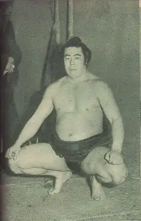 He was born in 1923 as Noboru Ogata in Abashiri, Hokkaido, the second son of owners of a popular local restaurant. His older brother died in an accident at elementary school, and he became a much shyer personality after that tragedy. An acquaintance had connections to sekiwake Asahigawa, and Ogata was also an admirer of Futabayama. Both were members of the Tatsunami stable, and so in January 1939 Ogata applied to join. He was turned down due to a lack of weight, with the coach who conducted the examination suggesting he might be better off as a tokoyama (sumo hairdresser). However, Ogata was determined to become a sumo wrestler, and successfully passed the physical examination a year later. Making his professional debut in January 1940, and managing to avoid being called up for war service, he rose slowly up the ranks. He reached the second highest juryo division in October 1948 and the top makuuchi division in September 1950. He made his debut in the sanyaku ranks at komusubi in September 1954. He was runner-up in the March 1957 tournament with a 12–3 record. His highest rank was sekiwake, which he reached in November 1957 at the age of 35. He earned ten special prizes for achievements in tournaments and ten kinboshi, or gold stars, for defeating yokozuna. His kinboshi were earned against six different yokozuna: Azumafuji, Yoshibayama (twice), Tochinishiki (twice), Chiyonoyama, Wakanohana and Asashio (three times). He defeated Tochinishiki on the opening day of the September 1958 tournament, a match which became notorious after the referee initially awarded the bout to Tochinishiki and then argued with the judges for ten minutes after they reversed his decision, leading to the referee's suspension for the rest of the tournament. His final win over a yokozuna was in May 1961 at the age of 38 years, three months, making him the oldest post-war wrestler ever to earn a kinboshi.