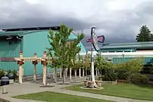 Klahowya Secondary School (or KSS) is a secondary school located in Silverdale, Washington and is in the Central Kitsap School District. Klahowya Secondary School was constructed in 1996-1997 as a 133,715 square foot facility with 34 classrooms, 13 labs, a gym, auditorium, and library for grades 7-12. Originally scheduled to open in 1996, it was delayed for another year. [2] In 2016, the school expanded to include sixth graders, and in 2018 a new wing, auxilary gym, 13 classrooms, 3 labs, a fitness room, and a second music room were added as a 45,300 square foot addition. A new track and field, and stadium were also added. On March 13, 2020, Klahowya remained closed due to the on-going COVID-19 pandemic along with all public and private schools in Washington state.