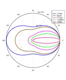 which is symmetrical in the scattering angle, i.e. the photon is just as likely to scatter backwards as forwards. With increasing energy this symmetry is broken and the photon becomes more likely to scatter in the forward direction.