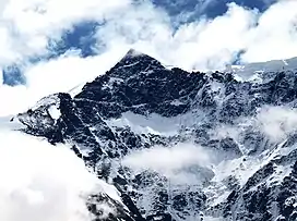 - Retrieved from the Swisstopo topographic maps and Google Earth. The key col located west of the summit at 3,830 metres.