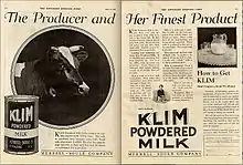 - Advertiser (June 5, 1920). "Try a KLIM SHAKE at the Soda Fountain" (JPEG). The Saturday Evening Post. Retrieved July 13, 2009.