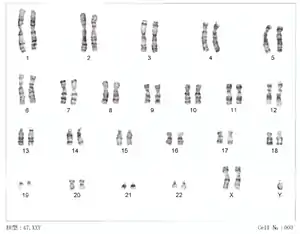 | Diagnostic method | Genetic testing (karyotype)[5] |