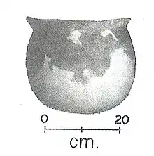 A total of 33 features were identified at the site, of which 32 were of Upper Mississippian affiliation. Some of the feature were classified as fire pits, and the remainder were classified as refuse pits. Feature 26 was noted as a deep roasting pit similar to those found at the Zimmerman site in Illinois.[1][2] Similar deep roasting pits have been found at the Griesmer site in northwestern Indiana,[3] and the Moccasin Bluff,[4] Schwerdt and Elam sites in southwest Michigan.[5][6] No plant remains were located at Knoll Spring, but at Griesmer the carbonized remains of white water lily (Nymphaea tuberosa) tubers were recovered and at Schwert and Elam, the carbonized remains of American Lotus tubers were recovered from similar roasting pits.[3][5][6]