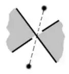 We construct a new plane graph whose vertices are the white faces and whose edges correspond to crossings. We can label each edge in this graph as a left edge or a right edge, depending on which thread appears to go over the other as we view the corresponding crossing from one of the endpoints of the edge. Left and right edges are typically indicated by labeling left edges + and right edges –, or by drawing left edges with solid lines and right edges with dashed lines.