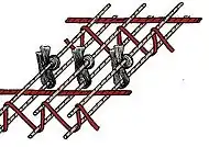 Another knot frequently used in Persian carpets is the Jufti knot, which is tied around four warps instead of two.[5][1] A serviceable carpet can be made with jufti knots, and jufti knots are sometimes used in large single-colour areas of a rug, for example in the field, to save on material. However, as carpets woven wholly or partly with the jufti knot need only half the amount of pile yarn compared to traditionally woven carpets, their pile is less resistant to wear, and these rugs do not last as long.[8]