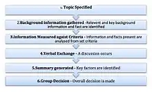 - Relevant background information[16] and key facts are identified and gathered in relation to the specified topic. This information is stored in a mutual location and made accessible to all decision makers. At this stage, decision makers may add any missing information.
