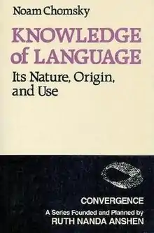 Knowledge of Language: Its Nature, Origin, and Use is a book by American linguist Noam Chomsky, first published in 1986. In this book, Chomsky deals with topics in the philosophy of language and the philosophy of mind. He argues that the study of linguistic structures provides insight into the workings of human mind.