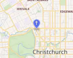 The original church was built in 1880 to a design by Samuel Farr. When the attendance increased beyond the capacity of the building, a new church was built in 1902 alongside the first one to a design by Robert England.[2] Located on the corner of Bealey Avenue and Victoria Street, it was one of Christchurch's historic buildings that was badly damaged during the 2011 Christchurch earthquake, but which has been repaired to a design by Wilkie and Bruce Architects using the remaining wooden frame.[3] Other buildings in the Knox complex remained functional.