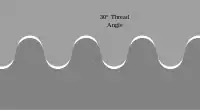 Knuckle threads with a flat 30 degree flank thread angle are standardized in DIN 405 for inch pitches and diameters ranging from 8 mm to 200 mm.[3] A more recent standard DIN 20400 uses metric thread pitch and lists diameters from 10 mm to 300 mm.[4] As DIN is a German organization, many instances of the DIN thread charts[5] write numbers with a comma as the decimal marker. For a thread pitch p, the crest and root rounding radius is slightly less than p/4, and approximately the middle third of each thread flank is flat.