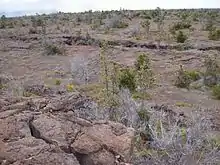 The Koa’e Fault Zone or Koa’e Fault System (pronounced coe-wah-hee) is a series of fault scarps connecting the East and Southwest Rift Zones on Kilauea Volcano on the Big Island of Hawaii. The fault zone intersects the East Rift near the Pauahi Crater and extends nearly 12 km (7.5 mi) in an east-northeast direction towards the westernmost boundary near Mauna Iki and the Southwest Rift Zone. Boundaries of the Koa’e Fault Zone also cover 2 km (1.2 mi) in a north-south orientation along the 12 km (7.5 mi) length. It is believed that the fault zone has been active for tens of thousands of years. The area is infrequently visited by park patrons due to the lack of eruptive activity and closure of certain areas to the general public.