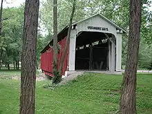 Shortly after Richardville County was organized in 1844 the commissioners appointed to establish the county seat approached Foster for a donation from his substantial holdings. (In 1846 tax records show that he owned 552 acres (223 ha) of farmland and as well as 67 divided lots in the business district.[16]) At the time of the request the only improvements in what is now Kokomo were Foster's log house and log barn and several Miami huts. The commissioners sought a donation of the more fertile lands south of Wildcat Creek, but Foster refused, donating instead 40 acres (16 ha) north of the creek—land which was thickly forested and "swampy."[17] The terms of the donation required that Foster build a courthouse on the land, but he was later excused and Rufus L. Blowers was promised $28 to build it. He was penalized $2 for construction delays.[18] The log courthouse was completed in 1845.[19]