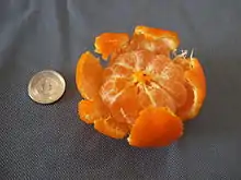 The komikan (小みかん, 小蜜柑) is a type of mandarin orange grown in Japan. "Ko" means "little", and "mikan" a type of citrus cultivar; komikans are unusually small. It is almost the same as the Kishumikan.