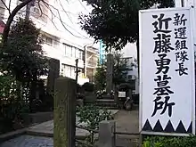While on display at the Sanjō Ōhashi, Kondō's head was taken away from the bridge by Saitō Hajime, who would later ask the priest Sonku Giten to hold a memorial service for him. The head was taken by the priest when he moved to Okazaki, Aichi Prefecture, and buried in a small mound behind the Hozoji temple.[29]