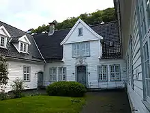 A number of significant buildings are located along Kong Oscars gate. The street's south-eastern end is at Stadsporten, the old city gate of Bergen. The intersection between Kong Oscars gate and Strømgaten, further north, is the location of Zander Kaae's Foundation (Zander Kaaes stiftelse, Kong Oscars gate 67), built in the 18th century for a charity and now the rooms are rented to students. On the west side of the intersection is St. Jørgens hospital, an 18th-century leprosy hospital and today a leprosy museum. Directly north of the museum is Danckert Krohn's Foundation, another charity for the elderly, built in the late 18th century.[2][3]