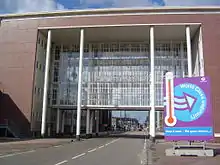 Labour relations at the plant were usually good; during the first two decades of the enterprise's existence the organisational structure was relatively simple, with limited hierarchies, and there were limited attempts at a benevolent social policy by the plant's management. Psychological testing of potential workers was gradually introduced, first for skilled workers, and after World War II for unskilled workers. Vocational training was slowly introduced after 1938.[31] In the post-war period foreign workers from Italy, Spain, Turkey, Yugoslavia and Morocco began to be employed at the plant, and in the 1960s the practice of housing foreign workers in floating hotels was begun.[32][33][34] Post-war there was no major industrial action until 1973, when 2,300 workers went on strike at the IJmuiden plant. During the Steel crisis there were no strikes, despite significant lay-offs.[35]