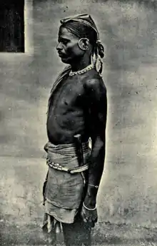 The 1901 census report noted the Koraga as being a lowly tribe of basket-makers and labourers, some of whom were employed as scavengers. They remain today among the untouchables, being considered as ritually polluted by Hindus, but there have in the past been claims that they are of Chandala stock.[4] Their folklore claims Hubbashika to have been one of their chiefs but the Kadamba narrative asserts a Chandala origin, that they are the descendants of the offspring of a Brahman woman and a Shudra father.[6] Edgar Thurston quotes M. T. Walhouse, who wrote in 1875 that this narrative was recorded by Brahmans and that, together with the Kapata, the Koraga were the lowest of the fifteen Chandala groups. However, Thurston thinks it probable that they were in fact the aboriginals of the region who were dispersed, dispossessed and turned into slaves by the influx of Aryans from the north of India.[7]